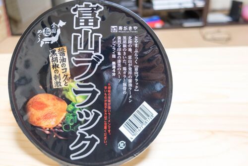 仕事で第二東名・静岡サービスエリアに立ち寄った際、「富山物産展」が開催されていたので「富山ブラック」というカップラーメンを購入してみました。 こちらの商品は、去年の9月に寿がきやから地域限定で発売された商品。 ラーメン好きとしては、思わぬ出…
